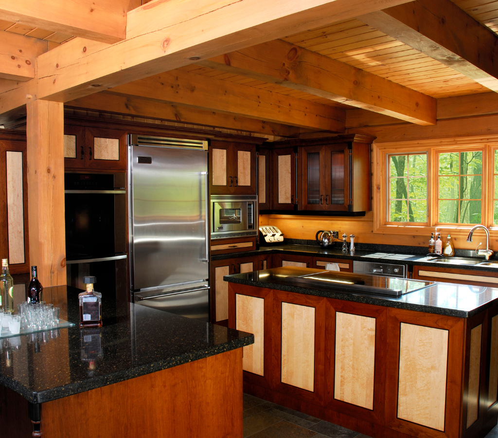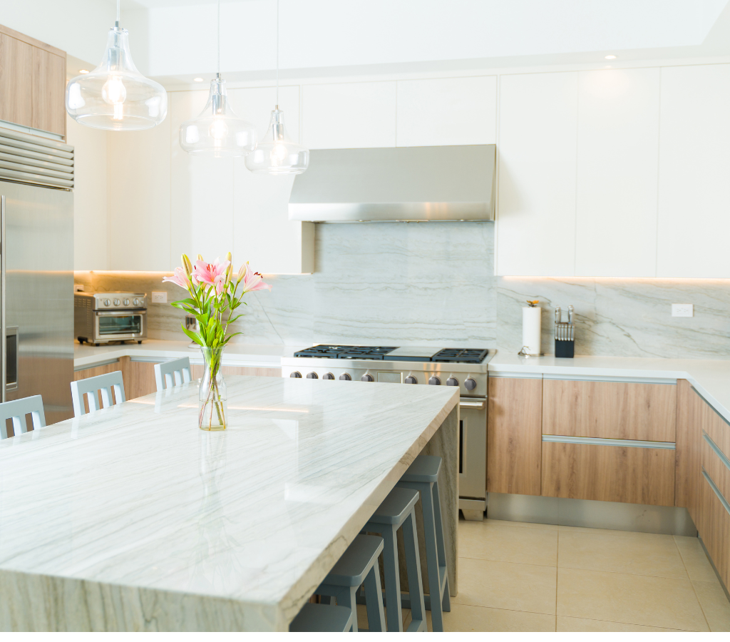 Uma cozinha pode, por exemplo, unir bancadas de quartzo resistentes com armários de madeira para um visual sofisticado e prático.