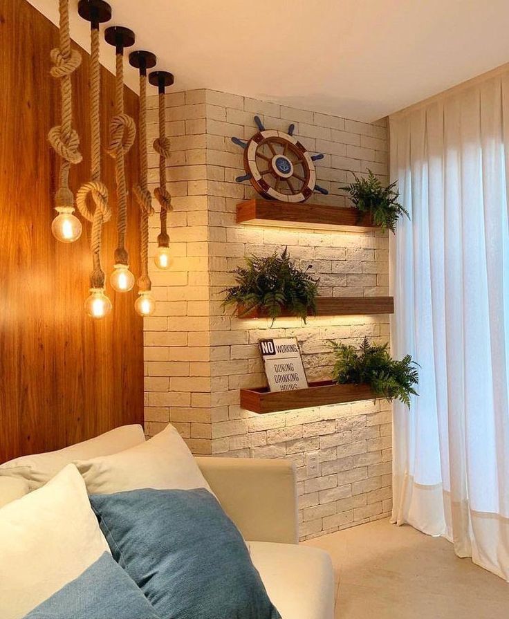 Uma parede de tijolos expostos pode transformar completamente a sala de estar, servindo como um elemento arquitetônico de destaque.