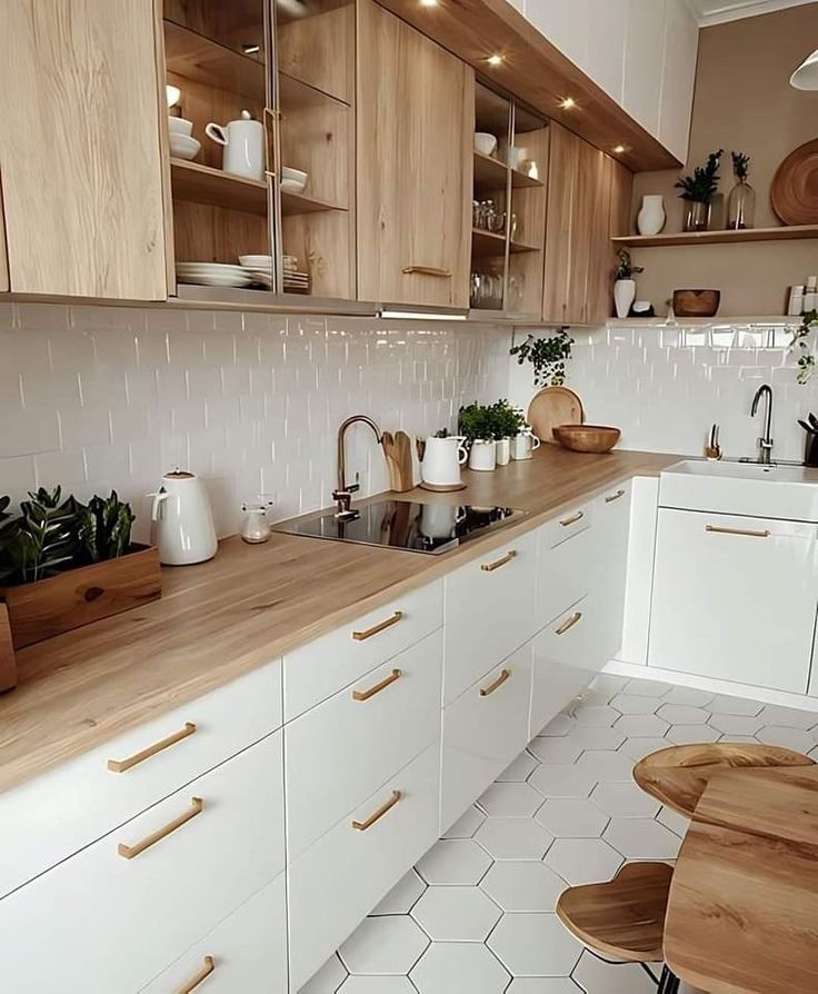 Para quem ainda ama o branco, a boa notícia é que ele não saiu de cena — mas agora vem repaginado. O estilo “soft modern” dá nova cara aos armários claros, adicionando detalhes como puxadores dourados, alças coloridas e texturas que tiram o visual do óbvio.