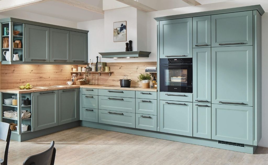 Se 2025 fosse uma paleta, ela teria verde-oliva, azul-petróleo, rosa suave e até tons terrosos mais quentes. Os armários seguem essa vibe colorida, deixando para trás a rigidez dos tons neutros.