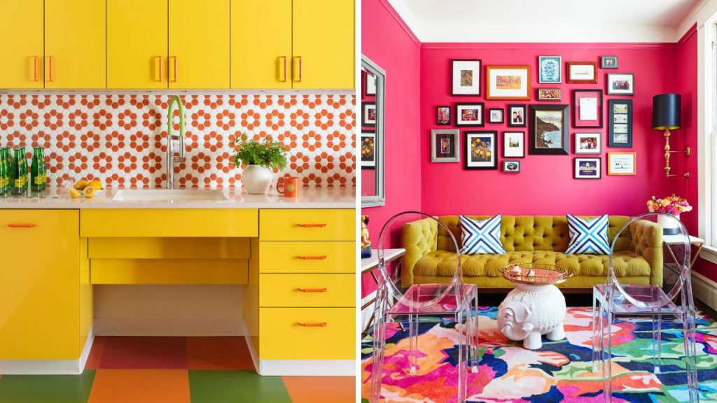 Misturar cores complementares, como laranja e azul, é uma forma ousada e dinâmica de usar cores fortes na decoração.