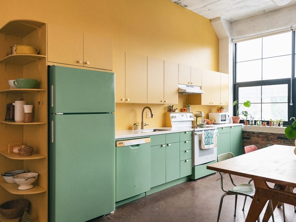 No entanto, nem sempre era fácil combinar essas cores com outras tonalidades, por isso a aposta era usar fogão e móveis no mesmo tom da geladeira.