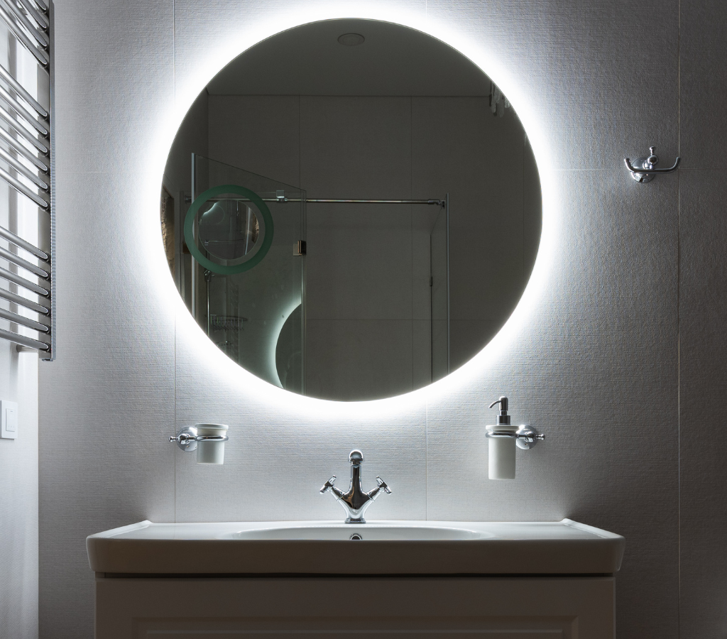Luzes de LED instaladas ao redor do espelho ou em luminárias acima dele, por exemplo, proporcionam uma iluminação uniforme. Também evitam sombras indesejadas e facilitam atividades como se maquiar ou arrumar o cabelo.