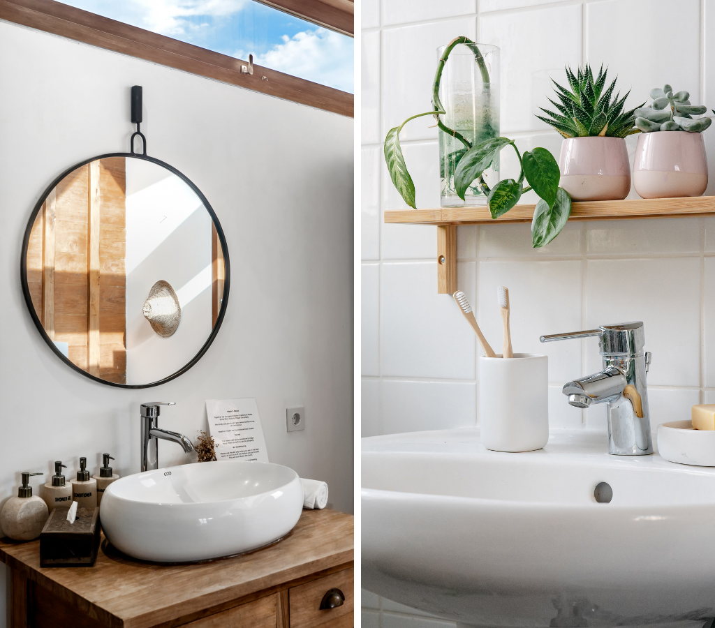 As plantas são perfeitas para trazer vida e frescor ao banheiro pequeno.