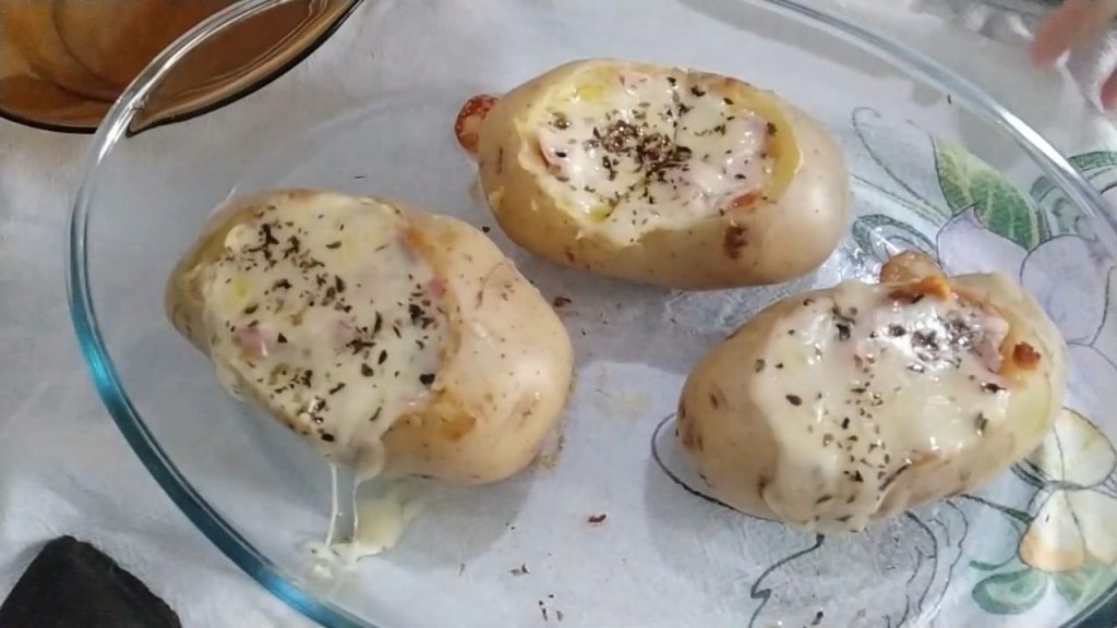 5. Asse: Disponha as batatas recheadas na assadeira. Regue o fundo com um fio de azeite ou óleo para evitar que grudem. Leve ao forno pré-aquecido a 200°C por cerca de 15 minutos ou até o queijo derreter e dourar levemente.