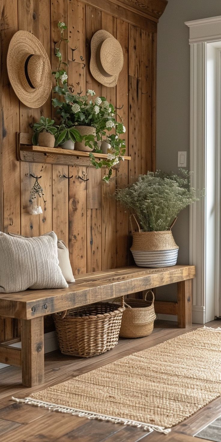 Chapéus de palha pendurados na parede ou apoiados em prateleiras, por exemplo, não só decoram, mas também facilitam o acesso a esses itens quando necessário. Cestos de vime, além de funcionais para guardar objetos, podem ser usados como cachepots charmosos para plantas.