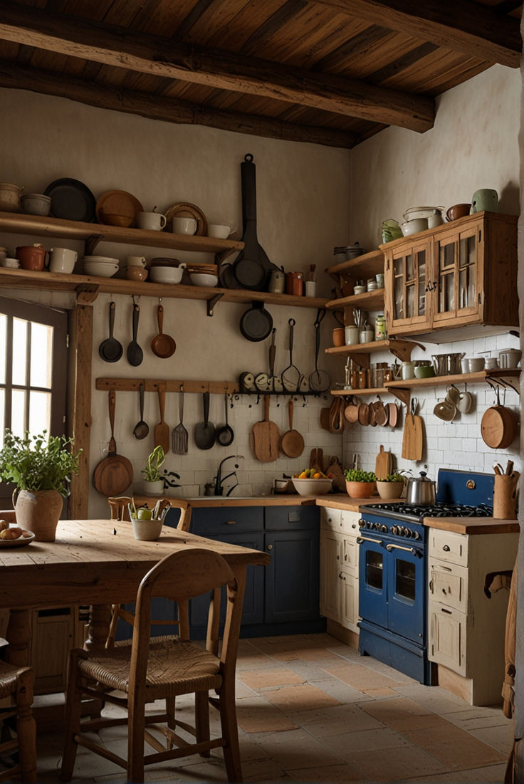 Uma maneira simples e charmosa de decorar sua casa de roça é deixar à mostra utensílios de cozinha que tenham um apelo rústico.