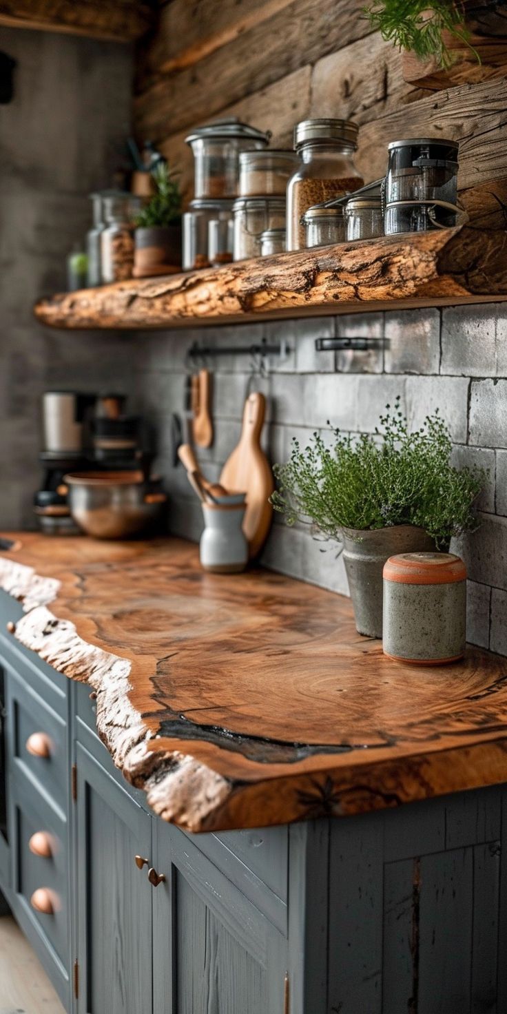 Panelas, potes de condimentos e outros itens rústicos à mostra