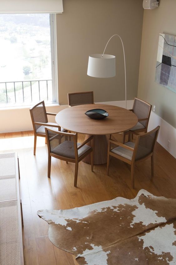 Se possível de ser utilizada, a mesa redonda deveria ser a primeira opção para seu espaço. Além da forma curva facilitar o fluxo e tornar a visual mais leve, também proporciona momentos mais íntimos com sua família e amigos.