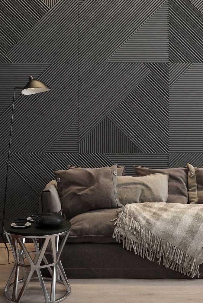 A parede é um dos maiores espaços disponíveis para brincar com texturas na sala. Texturas como papel de parede com padrão tridimensional, painéis de madeira, ou até uma pintura texturizada podem transformar o ambiente.