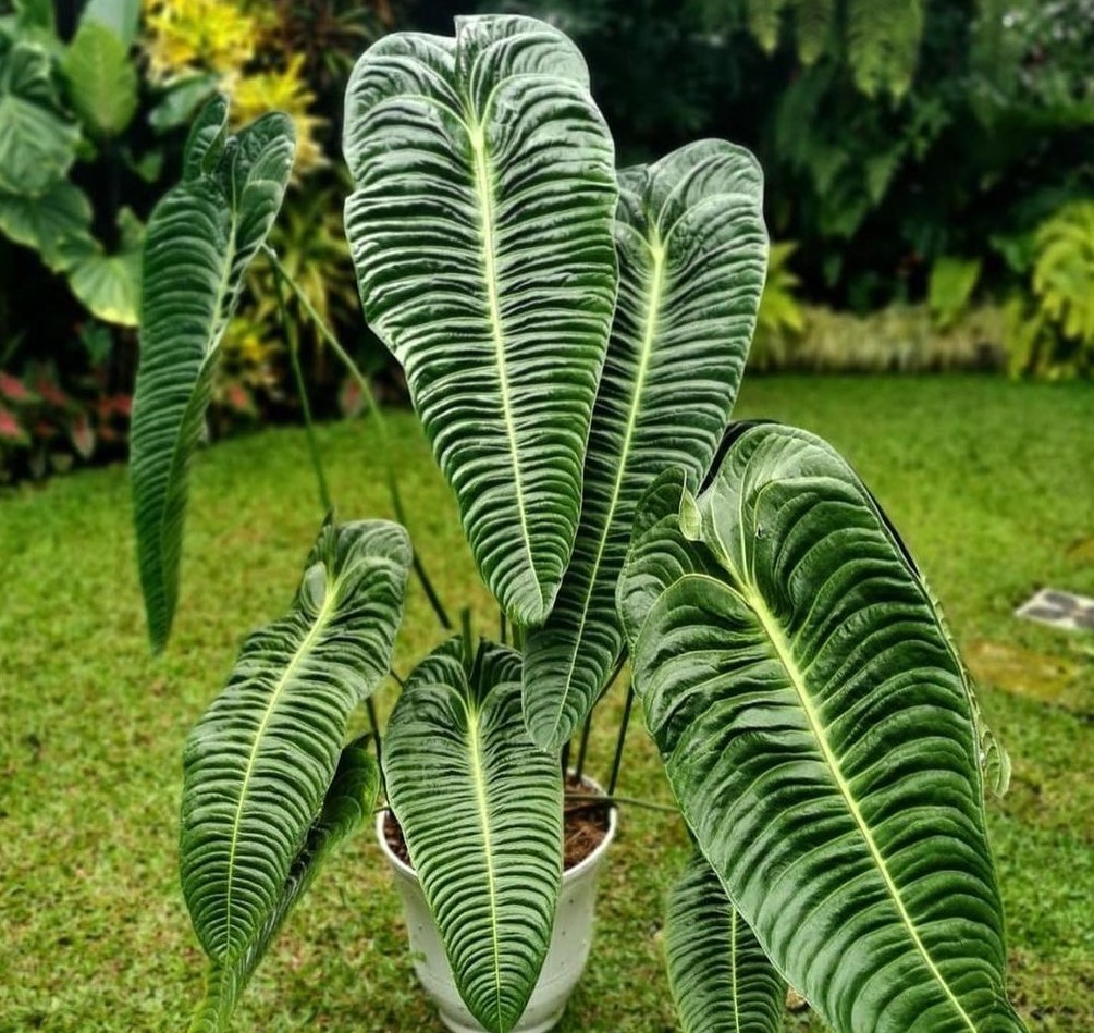 O antúrio-rei é uma planta que gosta de ambientes úmidos, quentes e iluminados, mas sem sol direto.