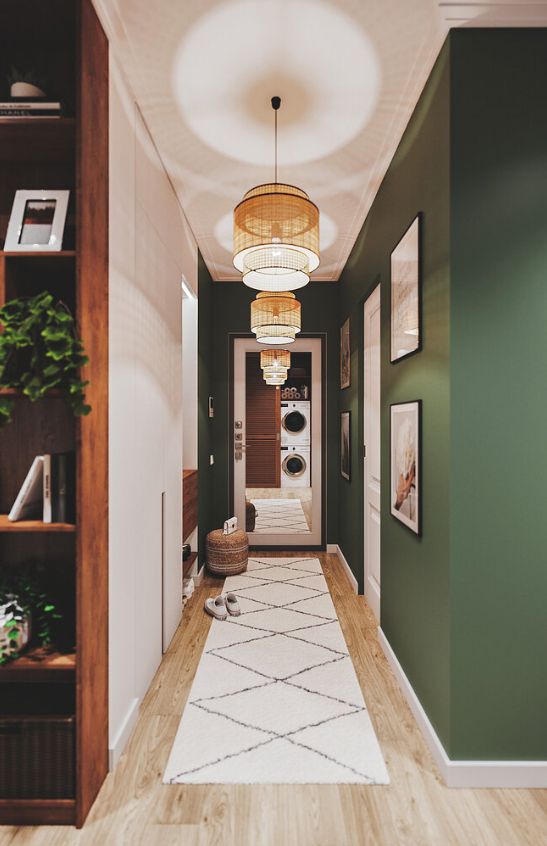 Você pode decorar seu corredor com várias tonalidades: desde os neutros (como cinza claro, bege ou branco) até os mais ousados, como o azul marinho ou um verde bem fechado. A ideia é que a cor vai criar uma sensação de fluidez, deixando o corredor mais harmônico e com uma vibe tranquila.