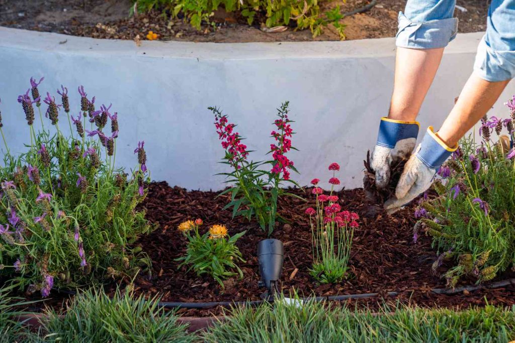 Além de funcionar como acabamento, esses materiais ajudam a controlar o crescimento de erva daninha, bem como contribuem para a retenção da umidade do solo.