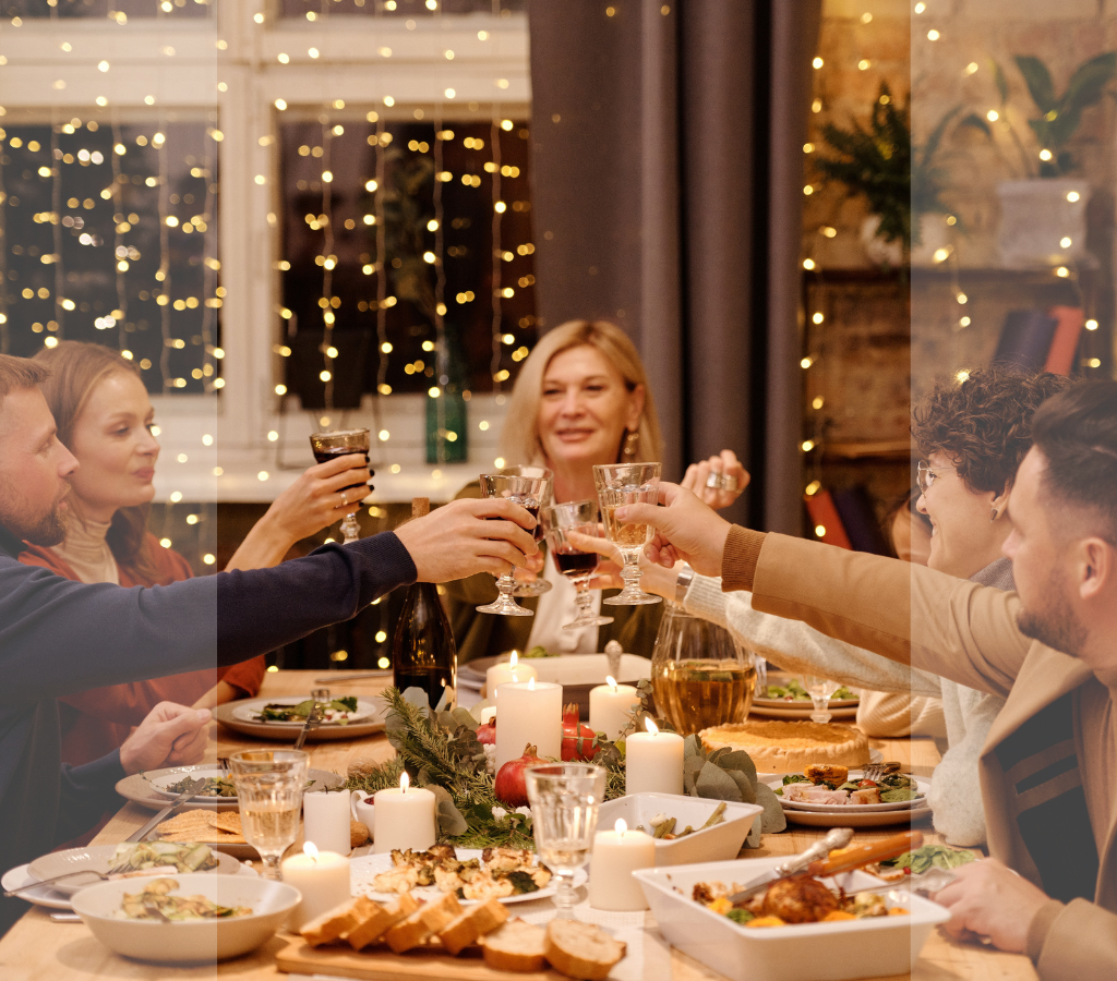 Acrescente toques brilhantes e iluminação abundante para criar um ambiente acolhedor e festivo.