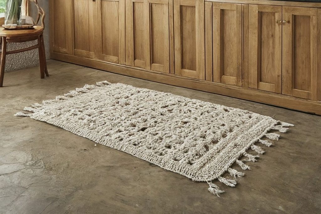 Para uma cozinha com tapetes de crochê, é essencial considerar o tamanho e o formato do tapete.