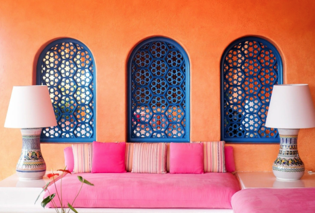 Se estiver com receio de apostar numa decoração totalmente colorida, considere manter paredes neutras e insira móveis e objetos decorativos em tons vibrantes, principalmente os que faça referência à cultura árabe.