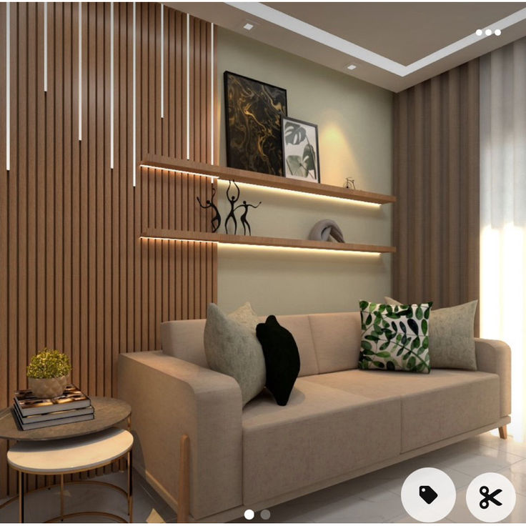 Ideias parede atrás do sofá ripado de EVA