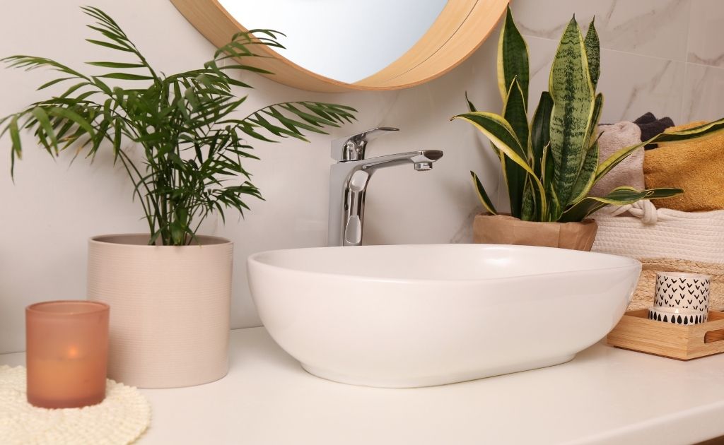 Coloque os vasos em locais onde não atrapalhem, como em cima do vaso sanitário ou no canto da bancada.