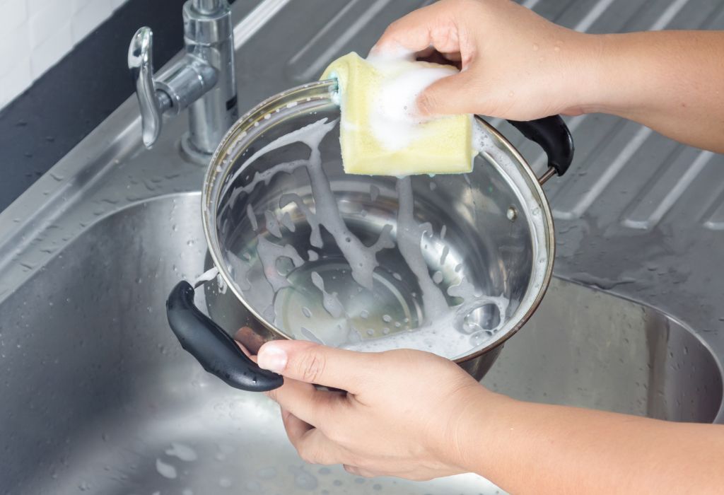 Enxágue bem em água corrente e seque a panela para finalizar.