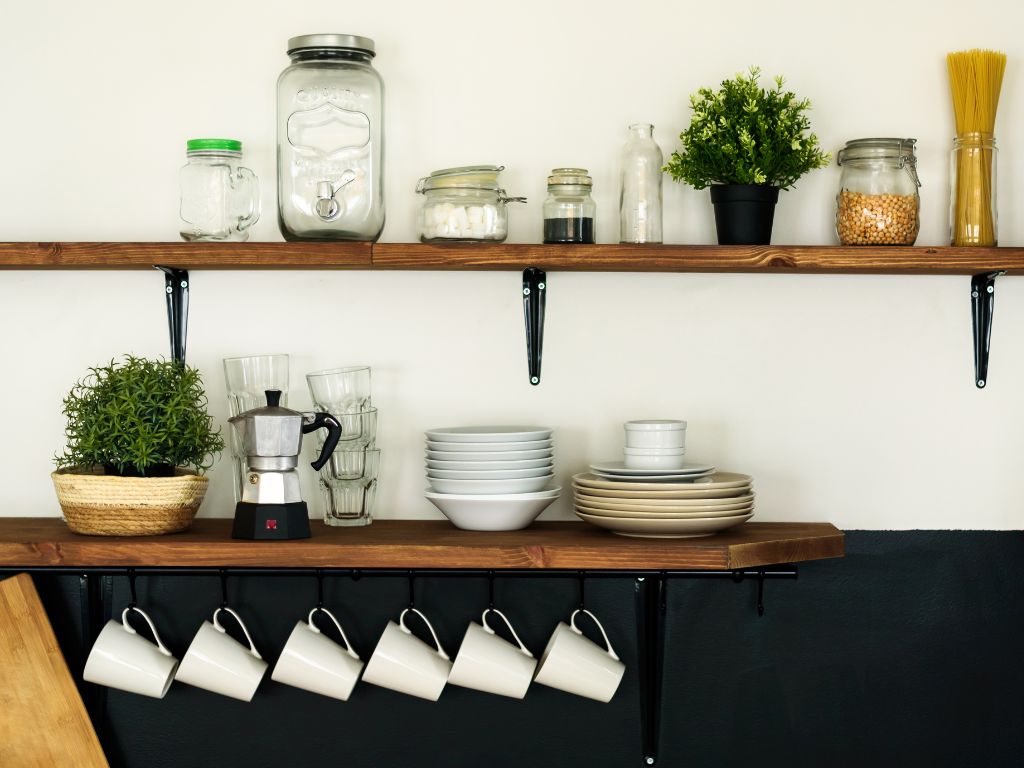 Além disso, acessórios decorativos, como potes de mantimentos em cerâmica ou bambu, podem ser posicionados em prateleiras abertas para dar charme ao ambiente.