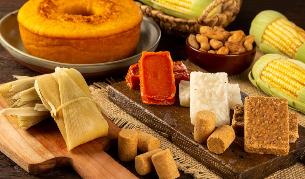 A comida é o coração da festa junina. Prepare ou compre quitutes clássicos como pipoca, paçoca, pé de moleque, bolo de milho, canjica e cachorro-quente.