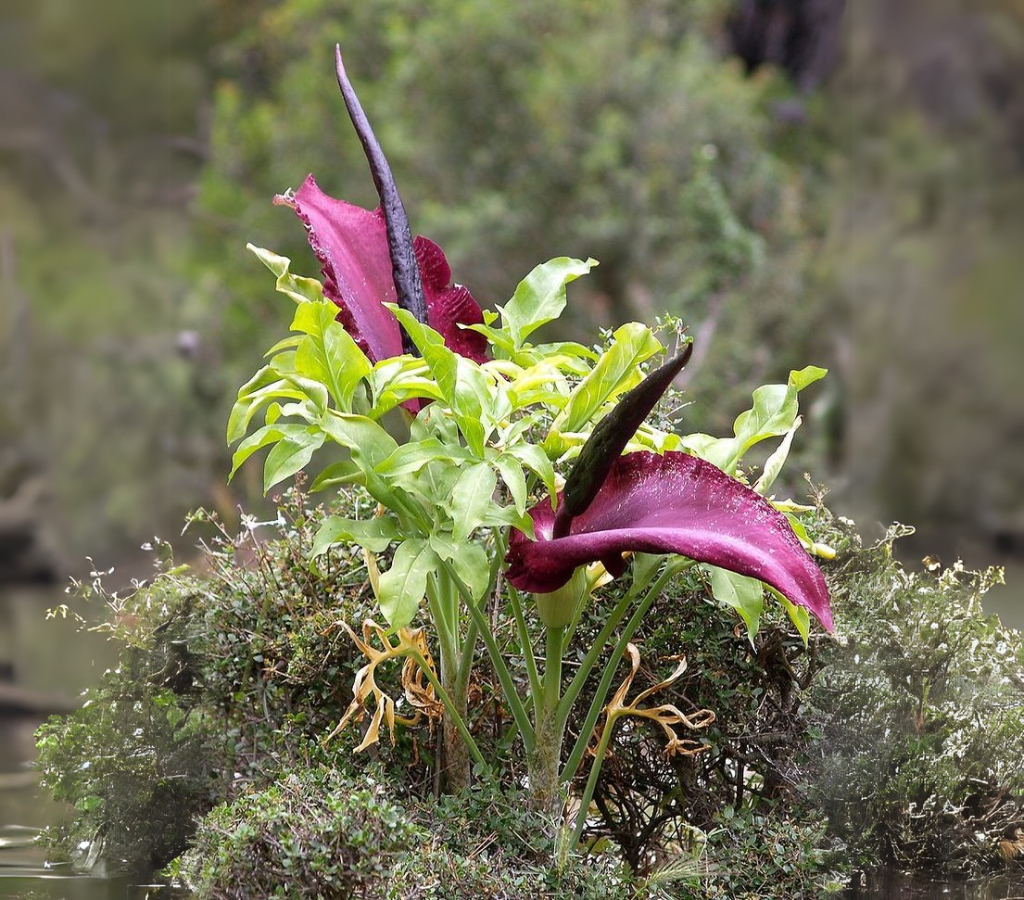 Com uma flor que impressiona pelo formato e cor, o lírio-cadáver também exala um cheiro pútrido que lembra carne podre.