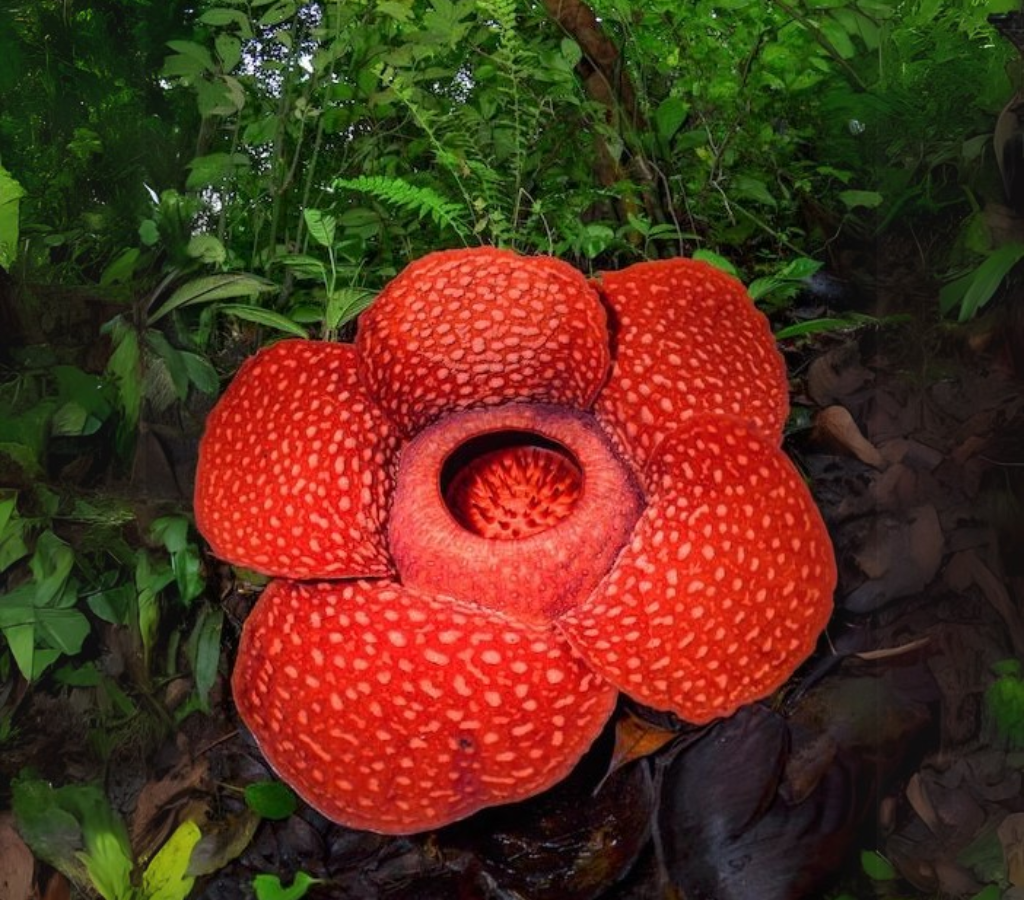 Conhecida como a maior flor individual do mundo, a Rafflesia arnoldii emite um cheiro intenso de carne apodrecida.