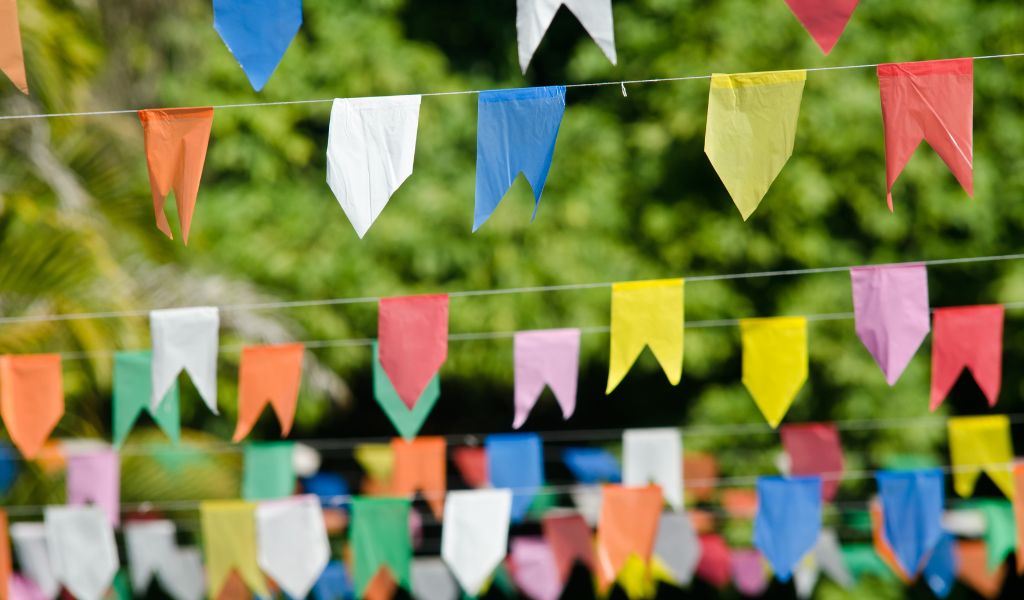 Escolha cores vibrantes como vermelho, azul ou amarelo, que combinam com o restante da decoração junina.