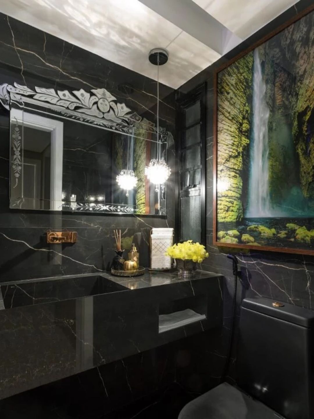 Invista em metais como dourado escovado ou preto fosco, extremamente modernos. Verifique o tamanho e proporção dos itens para que fiquem elegantes e funcionais.