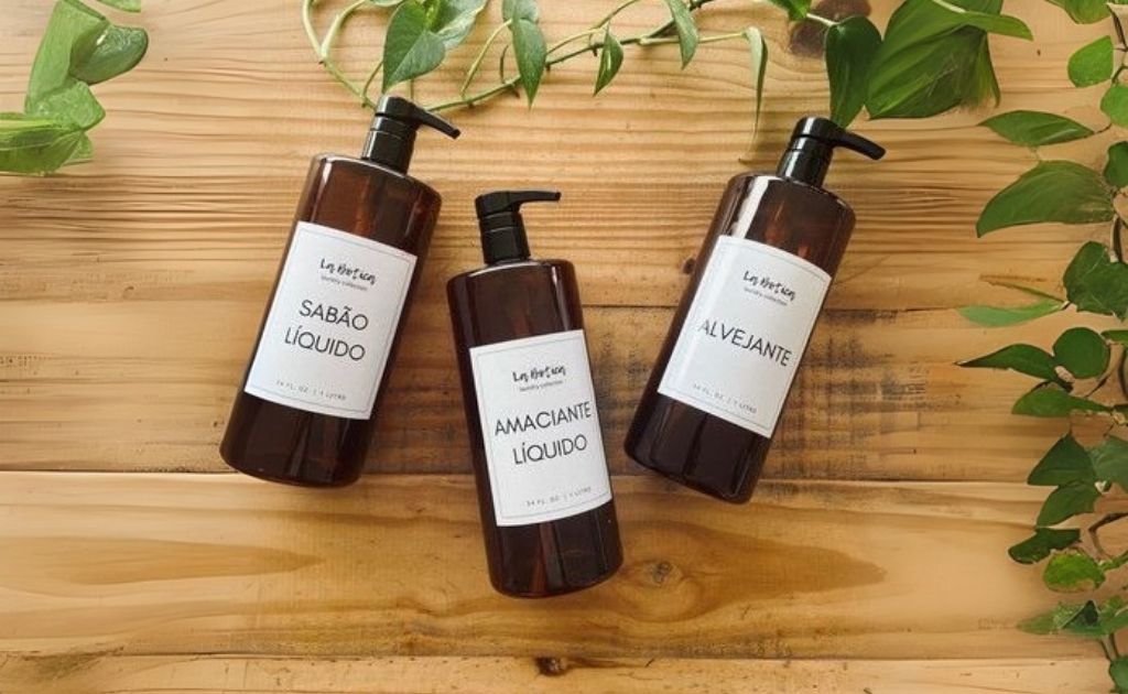 Você pode comprar kits de embalagens baratas em lojas online, como Shopee ou Mercado Livre, e transferir sabão em pó, detergentes e outros produtos para esses recipientes.