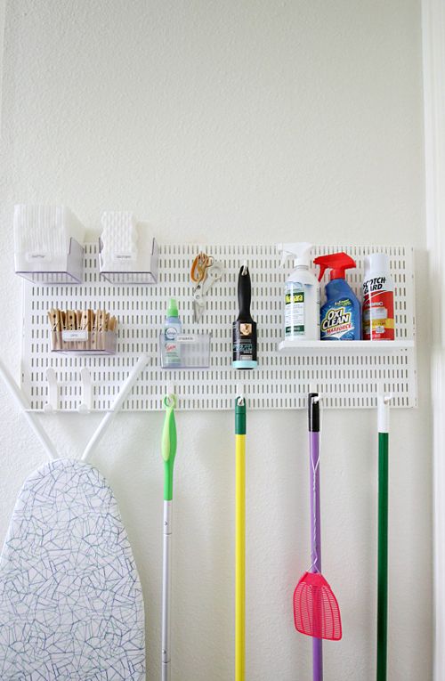 Ganchos na lavanderia para ferramentas de limpeza