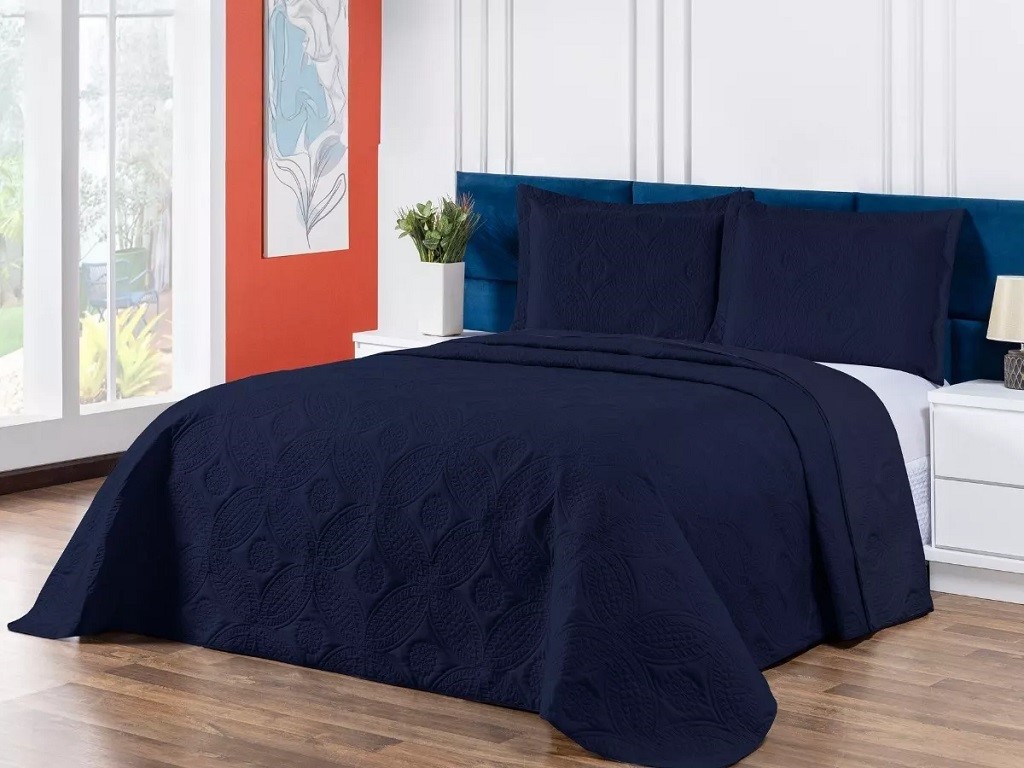 Uma das dicas de designers é investir em colchas sólidas para o quarto. Elas ajudam a trazer textura e elegância ao espaço, funcionando como complemento para roupas de cama com estampas ou padrões marcantes.