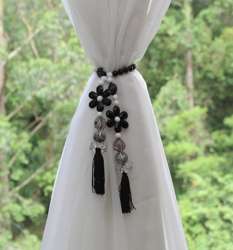 Por isso, além de ser um aliado na manutenção da cortina aberta, também ajuda a complementar a decoração. Normalmente, o prendedor é confeccionado com barbantes diferenciados, detalhes metalizados, franjas, pedrarias, entre outros detalhes.