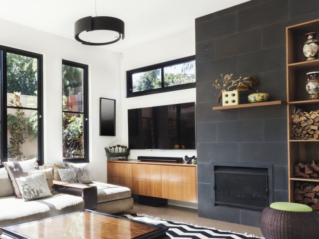 Além disso, sua maior vantagem é a versatilidade: combina com acabamentos em latão, madeira natural, concreto e tecidos neutros. Em espaços amplos, contribui para criar um ambiente mais fechado e sofisticado.
