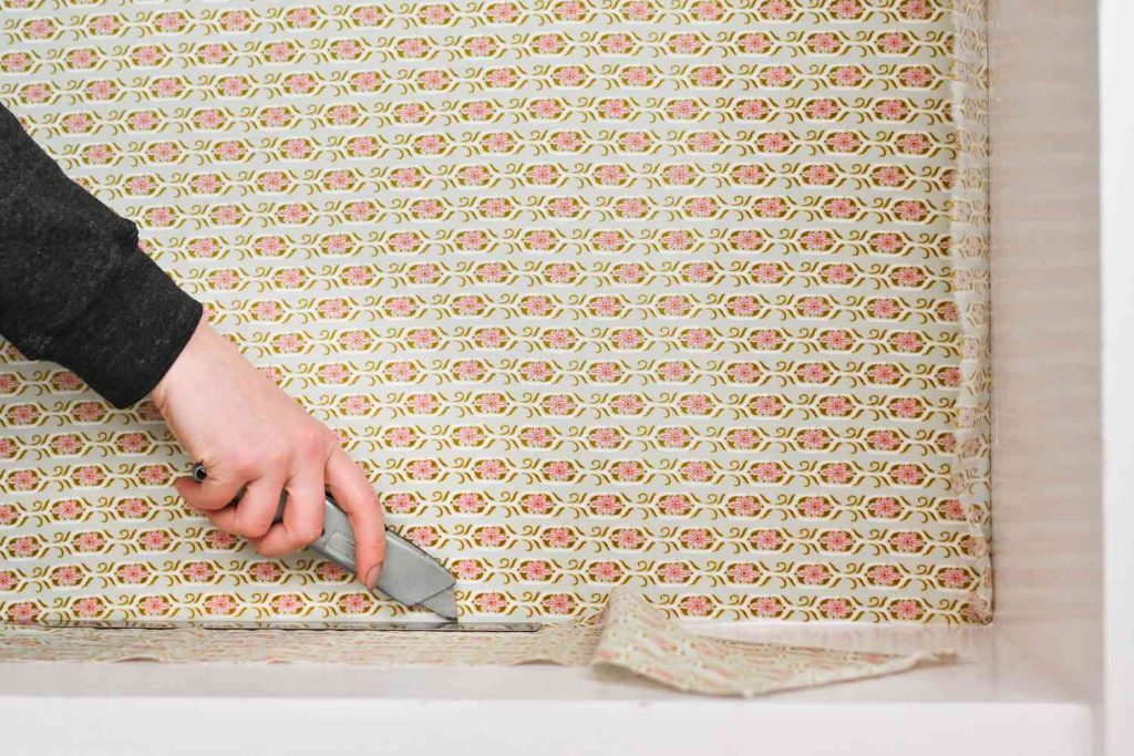 pessoa colocando tecido de parede